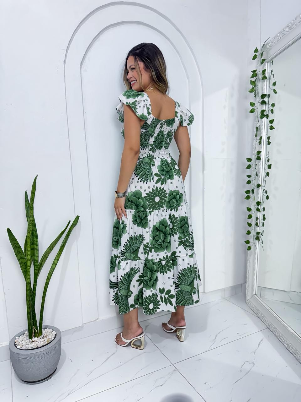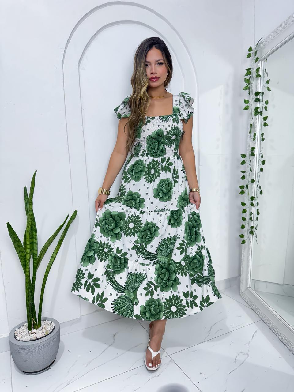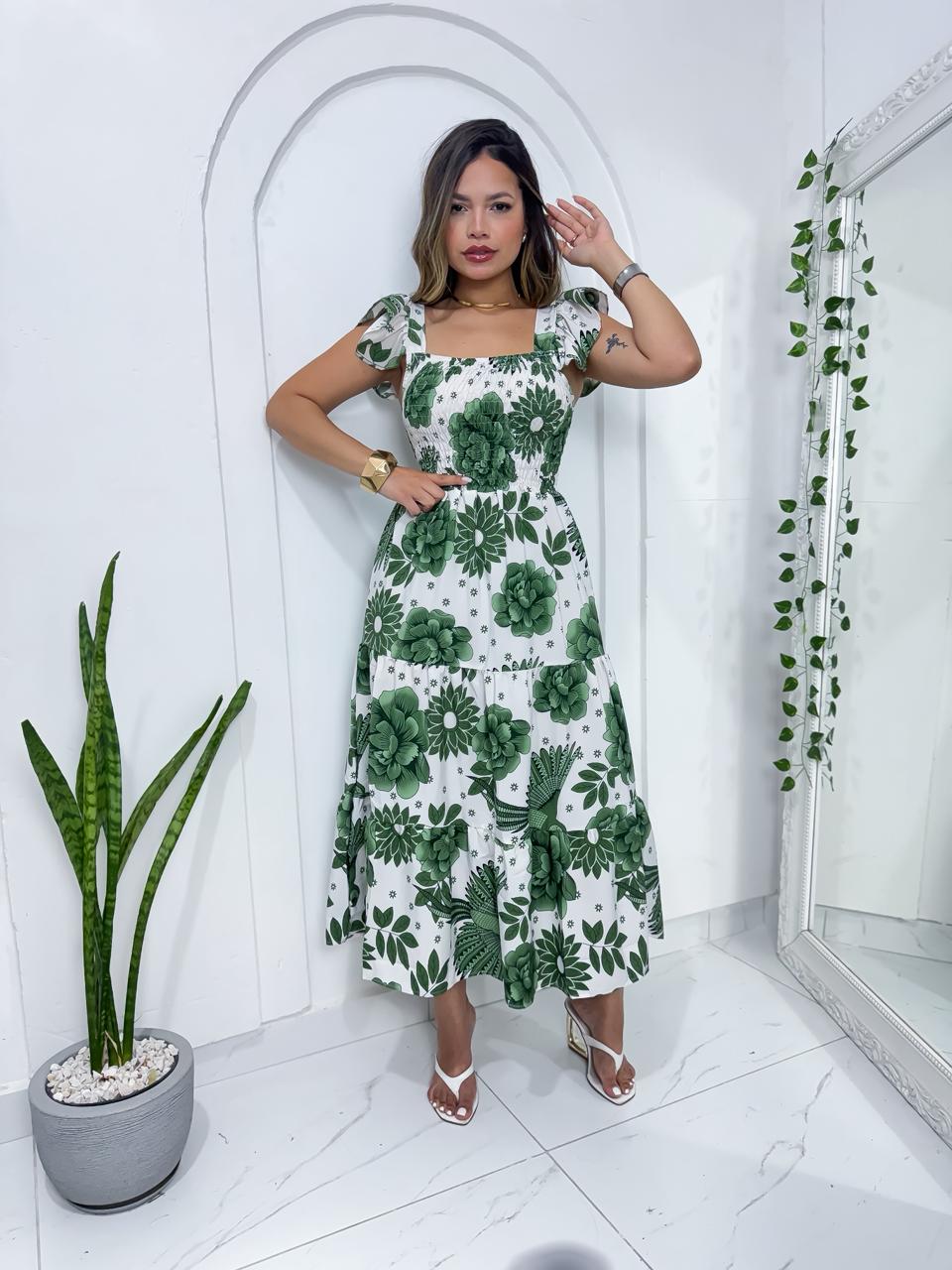 Este vestido midi floral é mais do que uma peça de roupa; é uma declaração de estilo. Combine-o com sandálias para um look casual e descontraído, ou com saltos e acessórios elegantes para uma ocasião especial. A sua versatilidade permite criar inúmeras combinações, adaptando-se ao seu estilo pessoal.